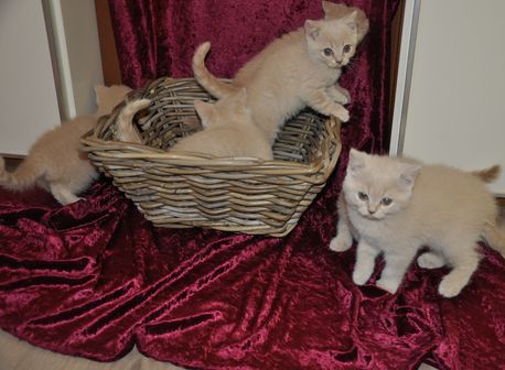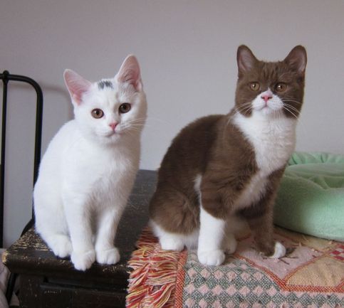 Skořicovobílá Evelina má 5 měsíců a bílá Tenerife má 4 měsíce. Jsou to šibalky, akční a hravé, ale mazlivé a moc milé. M8me z nich radost.